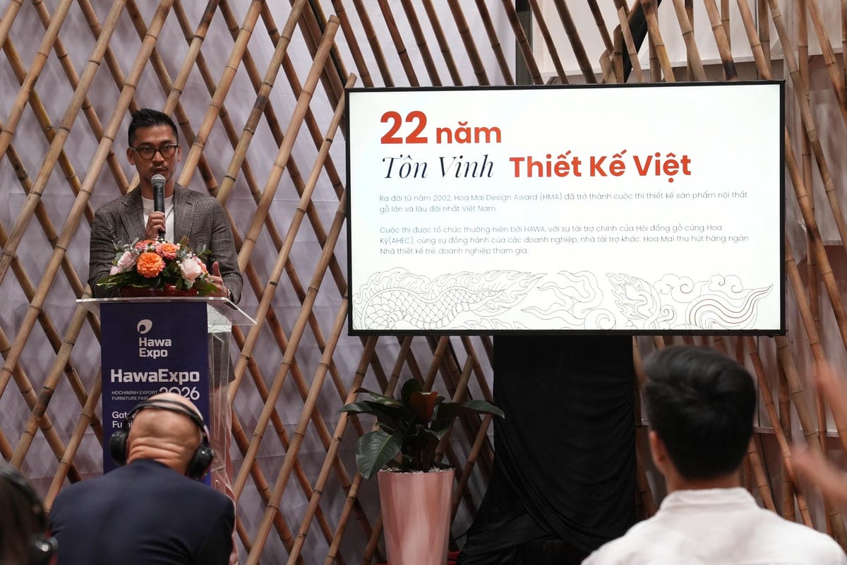 Khép lại ngày thứ 2 mang chủ đề Design & Trend, lễ công bố Giải thưởng Thiết kế Hoa Mai lần thứ 22 chính thức được khởi động, tiếp nối hành trình hơn hai thập kỷ nuôi dưỡng và kết nối thế hệ nhà thiết kế nội thất Việt. Được sáng lập bởi Hội Mỹ nghệ và Chế biến gỗ TP.HCM với sự đồng hành của American Hardwood Export Council, giải thưởng đã ghi nhận hơn 9.992 bài dự thi từ hơn 9.000 thí sinh, hiện thực hóa 457 sản phẩm cùng sự tham gia của hơn 30 trường đại học và 85 doanh nghiệp trong ngành. Hơn 2 thập kỷ phát triển, giải thưởng trải qua bốn giai đoạn phát triển, từ “ươm mầm” sân chơi sáng tạo cho sinh viên (2002–2010), mở rộng hợp tác quốc tế (2011–2016), chuyên nghiệp hóa hệ sinh thái thiết kế – sản xuất (2017–2019) đến giai đoạn chuyển mình từ năm 2024 với định hướng thương mại hóa.  Bước vào mùa giải 2026, cuộc thi công bố chủ đề “Thiết kế trong thời đại AI”, lấy cảm hứng từ câu hỏi “Chứng minh bạn là con người” của các mã CAPTCHA. Qua đó, ban tổ chức cũng đặt ra thách thức mới và truyền tải một thông điệp lớn cho cộng đồng thiết kế: trong khi AI có thể tạo ra hình dáng, chính con người mới là người quyết định giá trị văn hóa và bản sắc của sản phẩm.