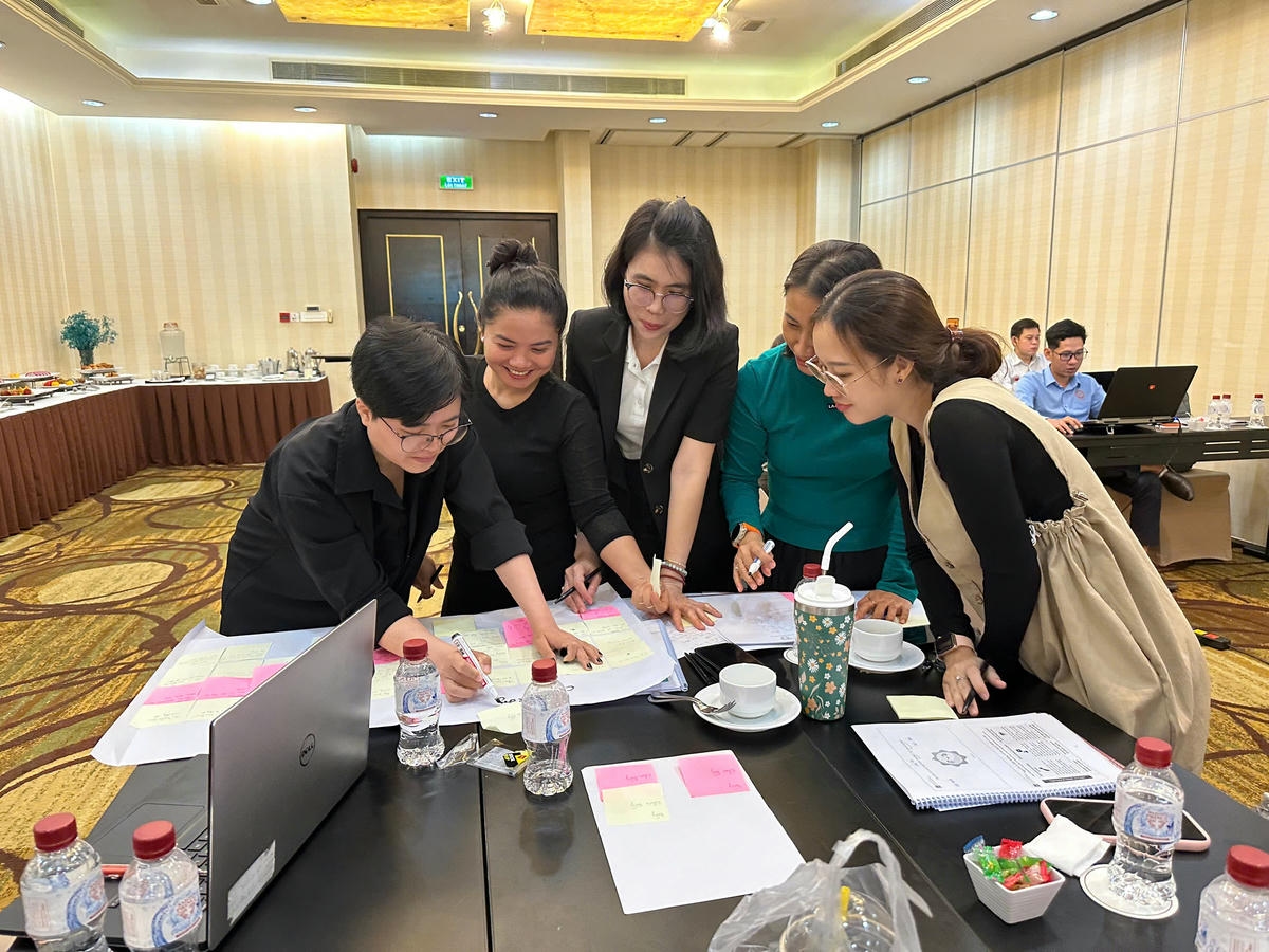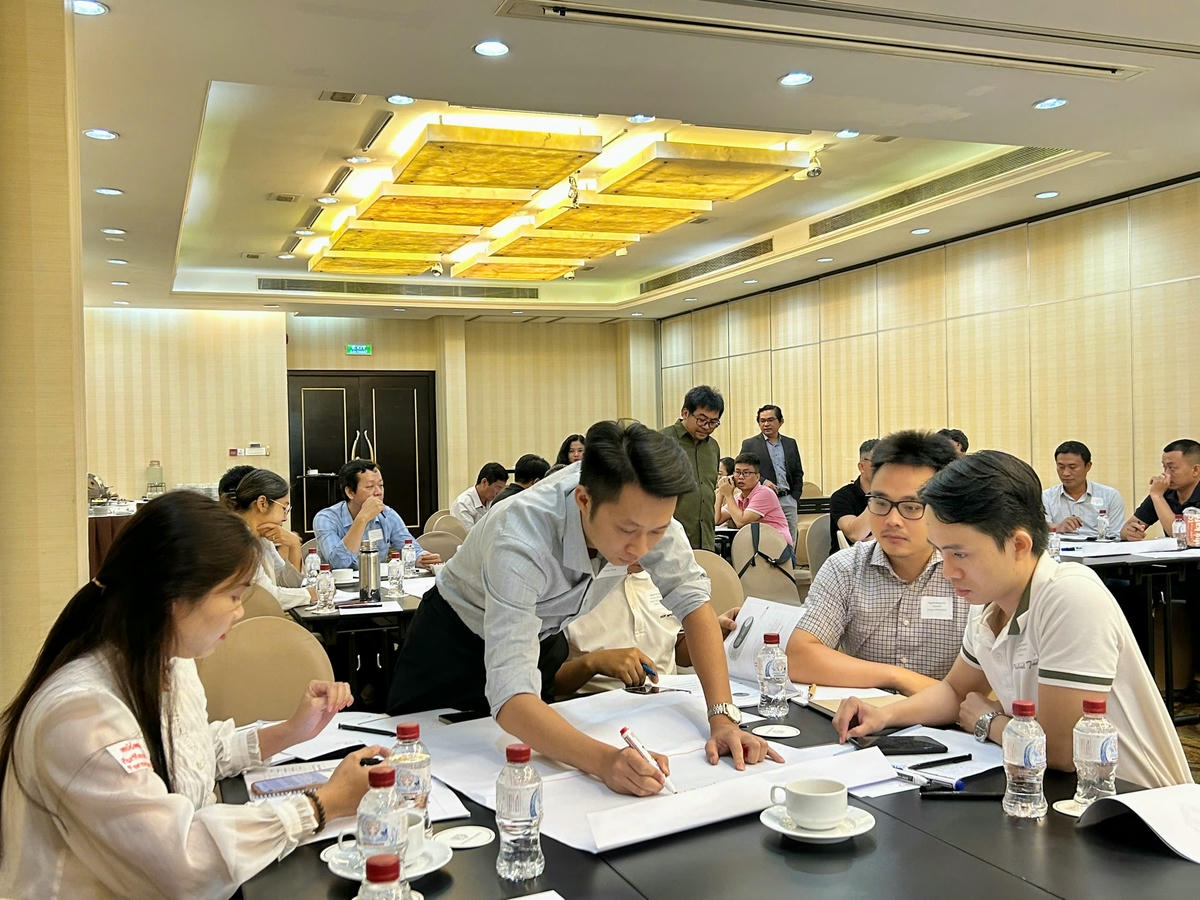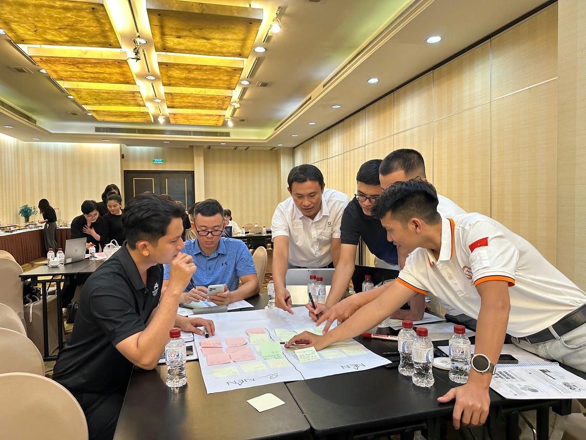 Trong ngày đầu tiên, dưới sự hướng dẫn của TS. Huỳnh Bảo Tuân – Chuyên gia từ Viện IMT, DN được tiếp cận tư duy Lean – triết lý nhằm tối ưu hóa nguồn lực và quy trình hoạt động bằng việc loại bỏ các yếu tố không tạo giá trị gia tăng (lãng phí). Đồng thời tìm hiểu về tám loại lãng phí thường gặp trong công việc văn phòng. Thông qua thảo luận và thực hành các công cụ như SIPOC và Gemba, học viên có cơ hội nhìn lại quy trình làm việc của chính mình, nhận diện các điểm chưa hiệu quả, và đề xuất hướng cải tiến.