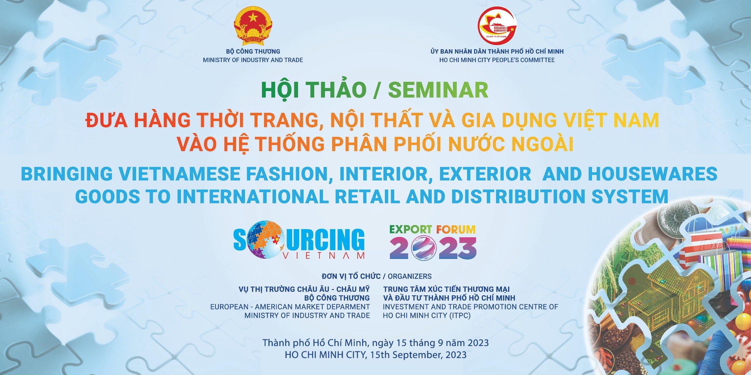 Trong khuôn khổ chuỗi sự kiện “Kết nối chuỗi cung ứng hàng hóa quốc tế” (Viet Nam International Sourcing 2023), nhằm hỗ trợ hiệu quả cho doanh nghiệp Việt Nam trong nỗ lực tham gia sâu hơn vào chuỗi sản xuất và cung ứng toàn cầu, thúc đẩy kết nối giữa các kênh phân phối, nhà nhập khẩu nước ngoài và các doanh nghiệp sản xuất, xuất khẩu trong nước, Bộ Công Thương tổ chức Hội thảo quốc tế “Đưa hàng thời trang, nội thất và gia dụng Việt Nam vào hệ thống phân phối nước ngoài”, cụ thể: