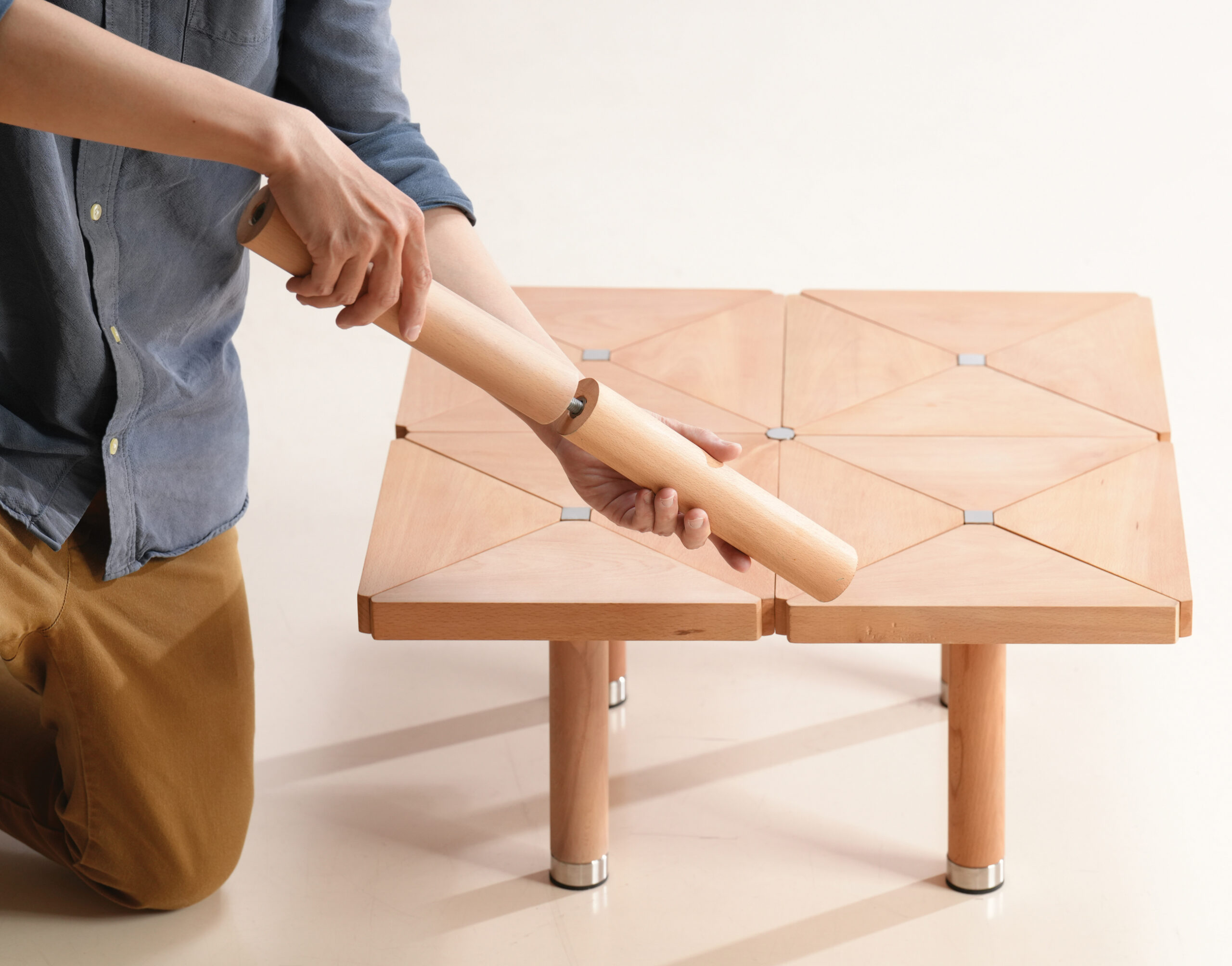 Catering to the needs of urban residents, flexibility is highly valued by many young designers in their designs. An exemplary case is the Triangle – Square – Circle, a finely combined set of three basic geometric shapes that can transform into various furniture items. Each individual chair within the Triangle – Square – Circle set has 12 magnets, serving to fix and connect individual chairs into tables or shelves of various sizes and shapes, allowing users to comfortably disassemble and assemble, attach details to create desired products.