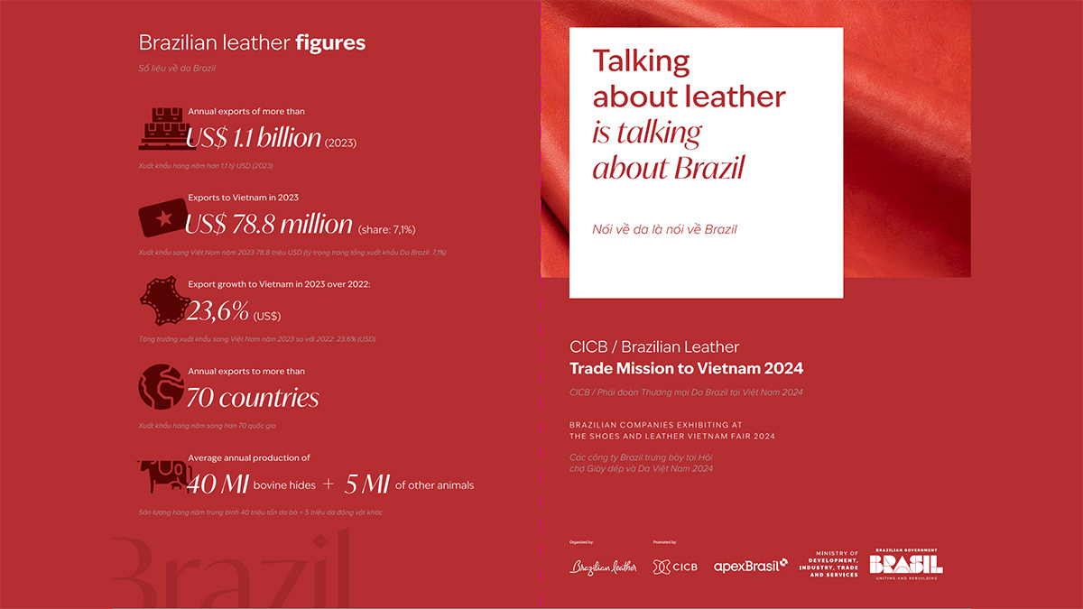 Đoàn Doanh nghiệp Brazil bao gồm 12 người: 8 nhà sáng lập, giám đốc thương mại đến từ các công ty thuộc da hàng đầu của Brazil, 2 người đến từ Liên hiệp da thuộc Brazil, 1 người từ phía Phòng xúc tiến thương mại và Công nghiệp Việt Nam – Brazil và đại diện của Sở Ngoại vụ TP HCM.