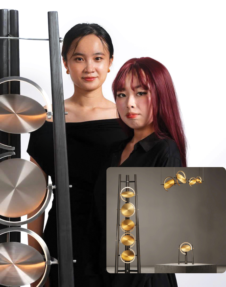 Ngô Thị Quỳnh Trang và Nguyễn Thị Anh Thư bên tác phẩm LUMAIRE LIGHT
